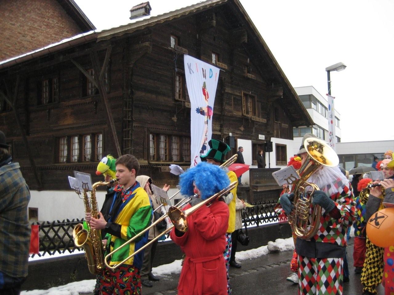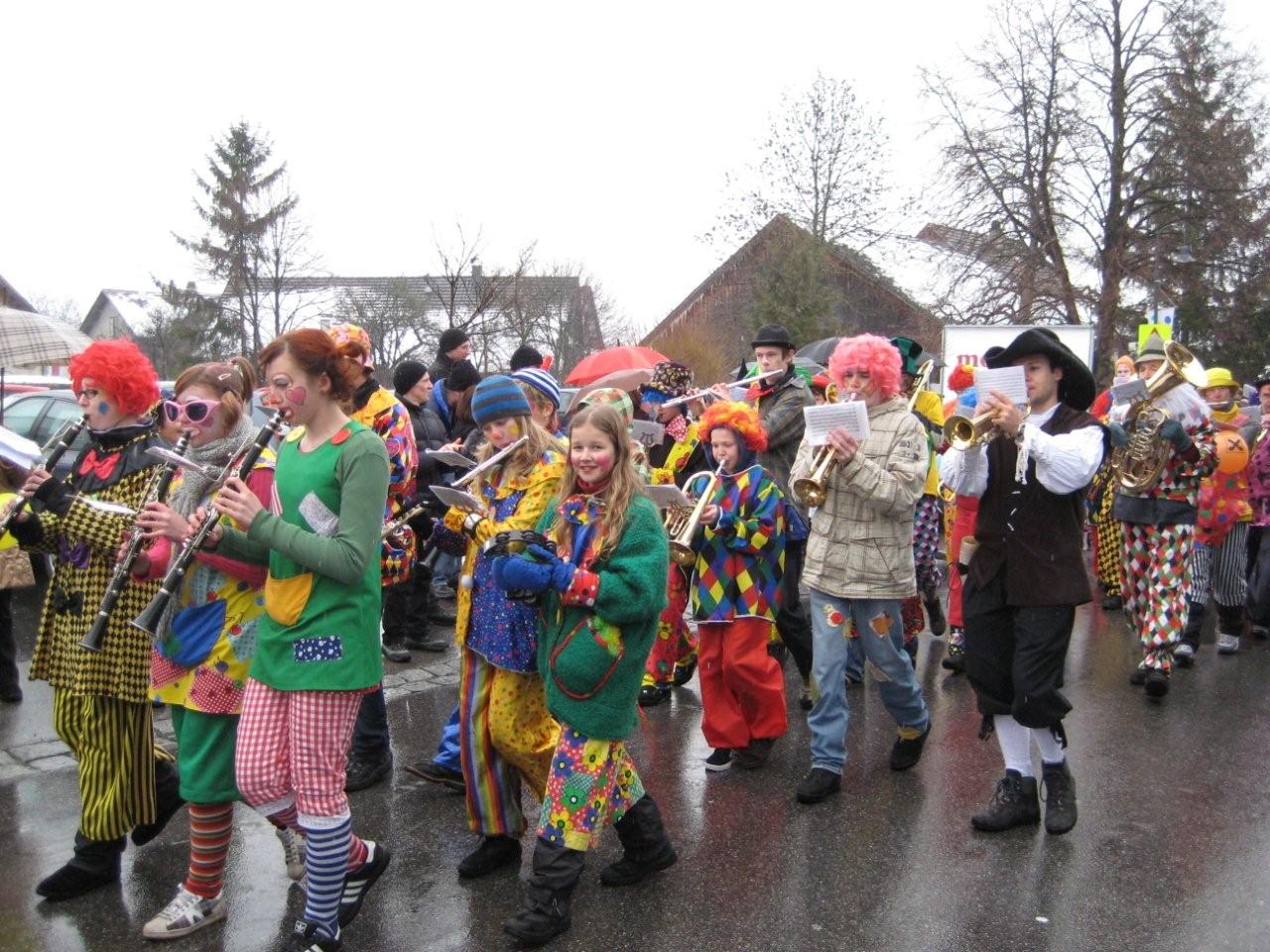 Der Musikverein Gisingen zu Gast beim größten Kinder-Faschingsumzug des Landes, veranstaltet von den Gisig'r Milchsüppl'r.